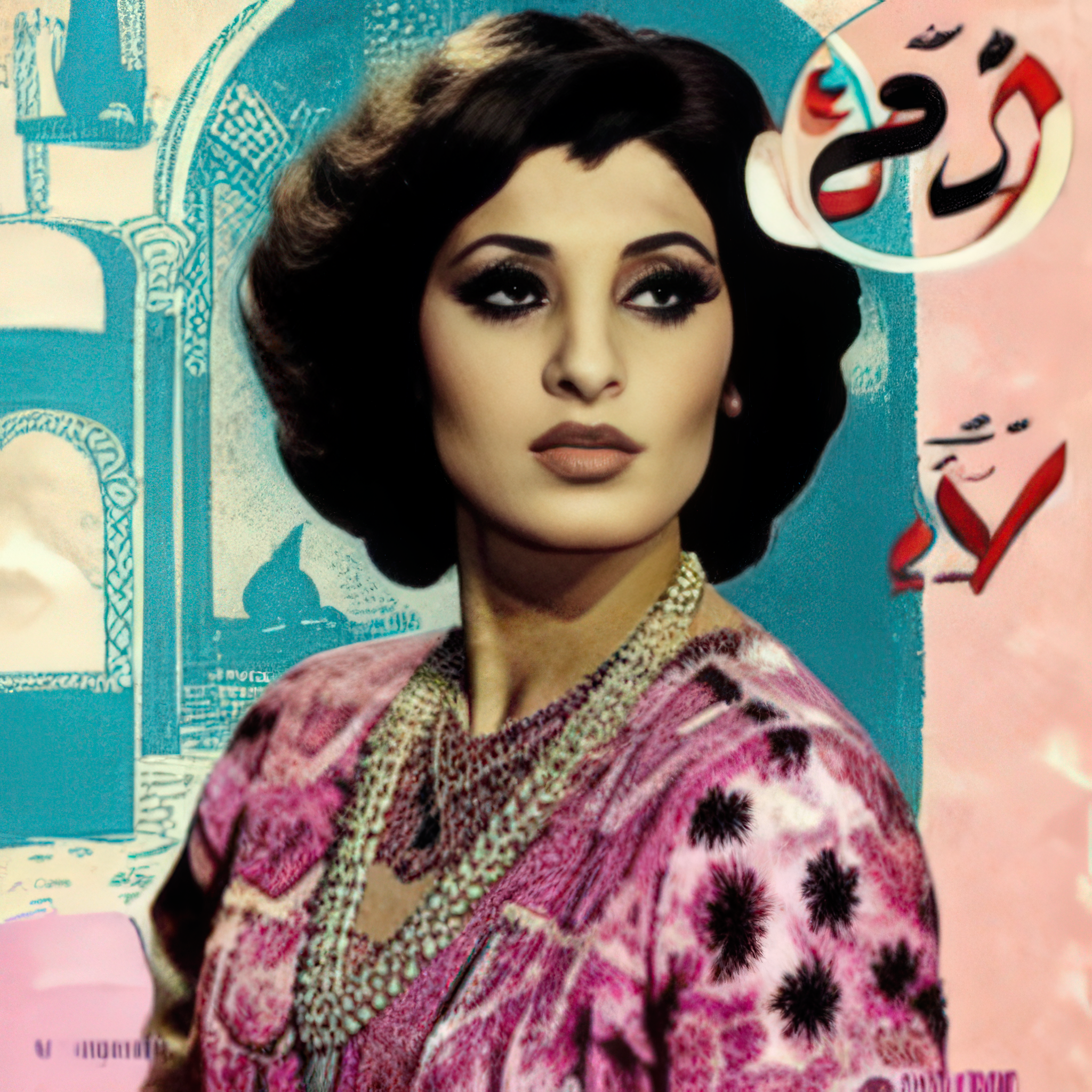 This series stages a dialogue between past and present, reimagining SWANA visual heritage through a custom generative model trained on mid-20th-century Arabic record sleeves. The project responds to contemporary datalogical, structural, and aesthetic biases that misrepresent or erase Arab identities through image technologies, including narrow standards of beauty and representation. Reanimating the look and feel of a golden age shaped by pan-Arabism, romance, style, and a distinctive Arabic modernity. By bringing past and present into contact, it exposes the slippages of memory, where nostalgia turns surreal and futuristic, refracting history through speculative archives that are at once playful, nostalgic, and alive.