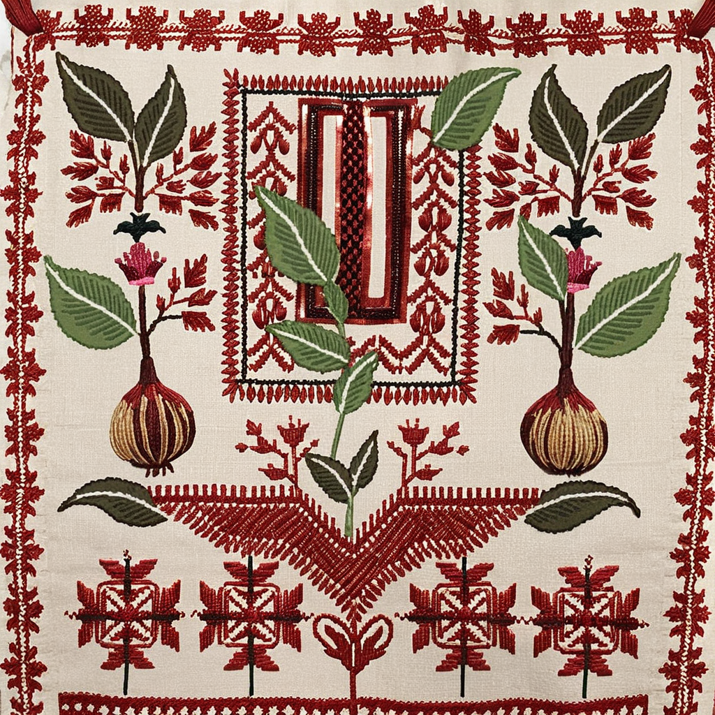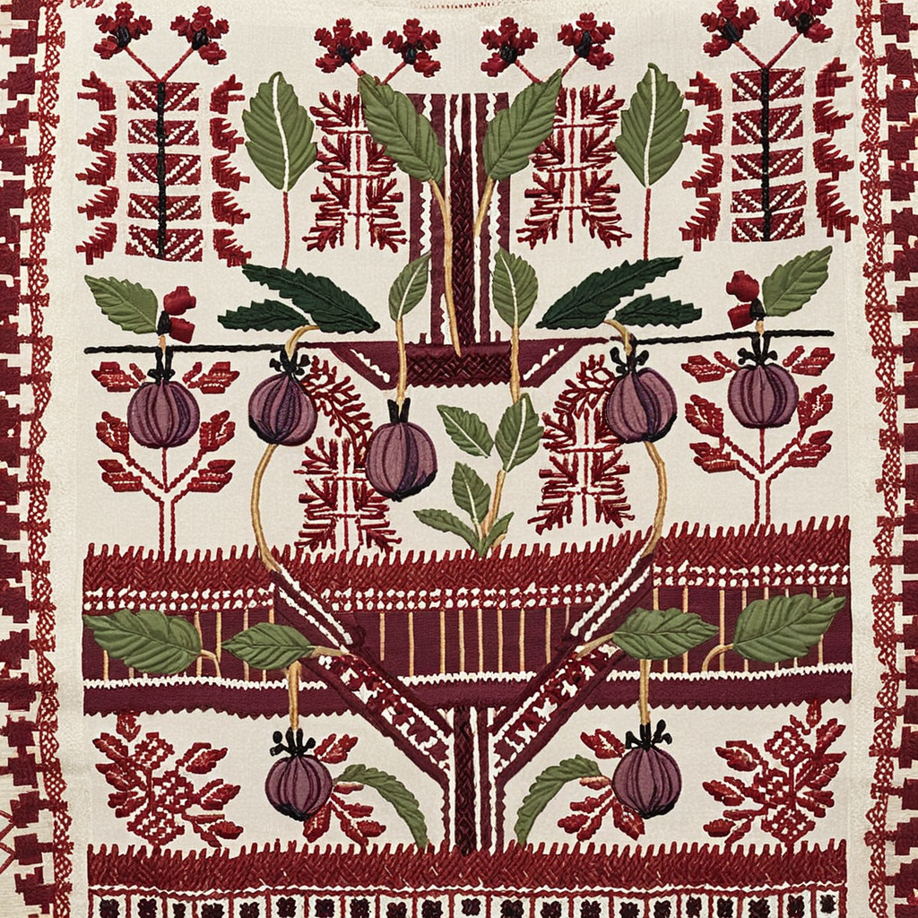 Tatreez, a form of Palestinian embroidery practised for generations, is a wearable art form of identity, resilience, and connection to land. Traditionally crafted by women, it carries cultural memory, agricultural motifs, and often encodes biographical details about the wearer.